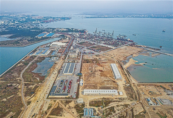 圖為洋浦港封關(guān)運(yùn)作項(xiàng)目和洋浦國(guó)際集裝箱碼頭。新華社記者 蒲曉旭 攝