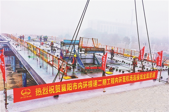 1月3日,隨著最后一片鋼箱梁精準(zhǔn)吊裝到位,由中鐵上海工程局集團(tuán)承建的襄陽(yáng)市內(nèi)環(huán)提速改造二期工程五標(biāo)項(xiàng)目?jī)?nèi)環(huán)至襄陽(yáng)機(jī)場(chǎng)連接線主線橋全面貫通,標(biāo)志著工程朝著通車運(yùn)營(yíng)目標(biāo)又邁進(jìn)了一步,再度刷新襄陽(yáng)城區(qū)“半小時(shí)交通圈”建設(shè)進(jìn)度。