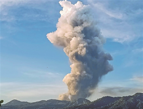 這是當?shù)貢r間1月3日在印度尼西亞北馬魯古省拍攝的噴發(fā)的杜科諾火山。據(jù)印尼火山和地質災害研究機構消息,1月3日,位于印度尼西亞北馬魯古省的杜科諾火山噴發(fā)。新華社發(fā) (印尼火山和地質災害研究機構供圖)