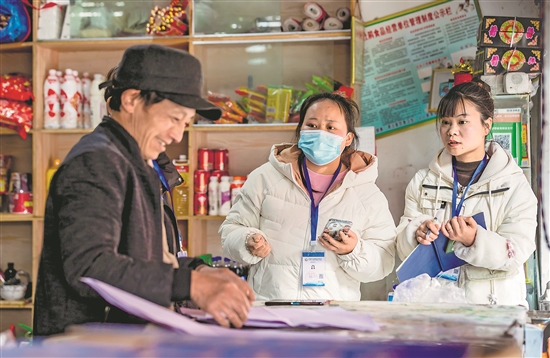 圖為1月4日,普查員在貴州省畢節(jié)市百里杜鵑管理區(qū)在拱社區(qū)進(jìn)行入戶現(xiàn)場登記。新華社發(fā)(范暉 攝)