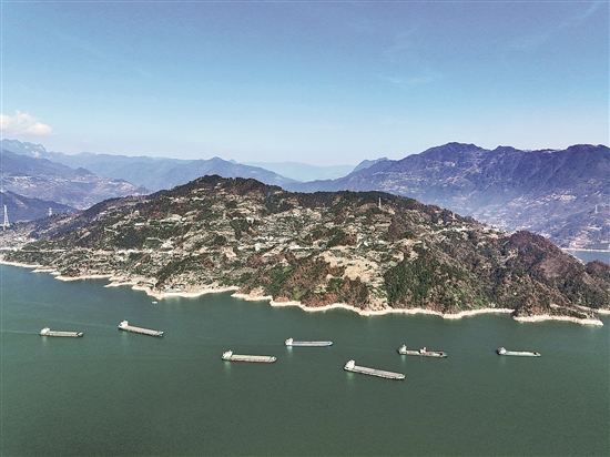 1月3日,在三峽大壩附近的湖北省宜昌市秭歸縣,裝有物資的各種運輸船舶穿梭于長江三峽水域,“黃金水道”一派繁忙景象。王輝富 攝