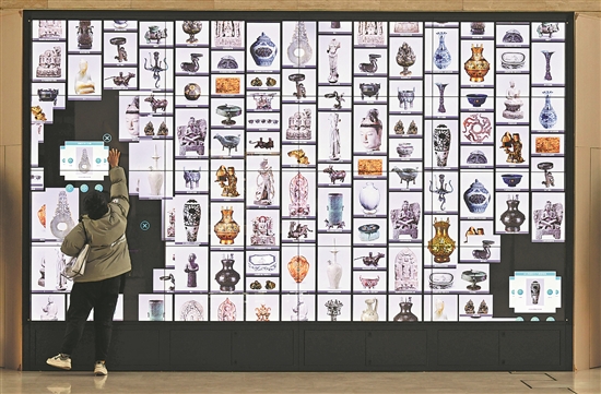 1月12日,游客在位于石家莊市的河北博物院參與互動(dòng)游戲。