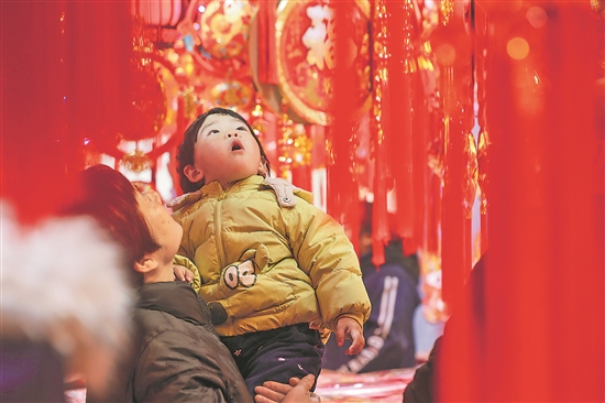 1月13日,在江蘇揚州市曲江小商品批發(fā)市場,市民在選購春節(jié)飾品。春節(jié)臨近,人們在傳統(tǒng)民俗活動中體驗節(jié)日習(xí)俗喜迎新春佳節(jié)。新華社發(fā)(齊立廣 攝)
