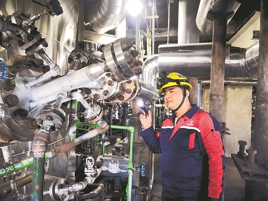 ⑤云南推行產(chǎn)改以來,造就了一大批高素質(zhì)產(chǎn)業(yè)工人,全省技能人才總量達(dá)到493萬人,其中,高技能人才143.96萬人,較產(chǎn)改啟動前的2016年增長59萬人。圖為云天化一線技術(shù)工人在檢視設(shè)備。