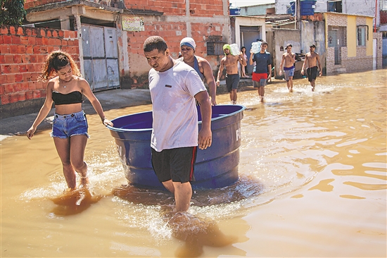 當(dāng)?shù)貢r(shí)間1月16日,在巴西里約州卡希亞斯公爵城,志愿者為受災(zāi)居民送飲用水。巴西里約熱內(nèi)盧州本月13日晚開(kāi)始的暴雨導(dǎo)致里約市北區(qū)和里約州內(nèi)陸多座城市受災(zāi)嚴(yán)重,共造成12人死亡。里約州社會(huì)發(fā)展和人權(quán)廳16日通報(bào),暴雨過(guò)后里約州內(nèi)陸地區(qū)有9000多人無(wú)家可歸,目前正在積極進(jìn)行災(zāi)后重建。新華社發(fā)(克勞迪婭·馬爾提尼 攝)