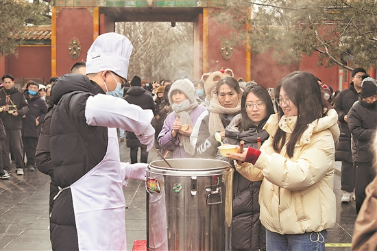 1月18日,農(nóng)歷臘月初八,是中國傳統(tǒng)“臘八節(jié)”,喝臘八粥是臘八節(jié)的重要習俗。北京雍和宮舉辦“舍粥”活動,吸引眾多市民前來領取臘八粥。 本報記者 楊登峰 攝
