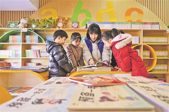 1月18日,志愿者在河北省灤州市一家城市書房內(nèi)給孩子們讀繪本。