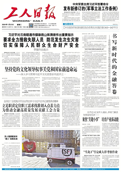 工人日?qǐng)?bào) 2024年01月23日 星期一
