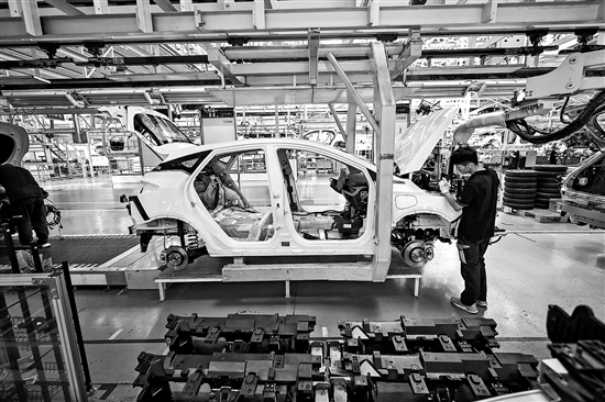 1月19日,中國工信部副部長辛國斌在國新辦新聞發(fā)布會上表示,2023年中國汽車整車出口491萬輛,同比增長57.9%,有望首次躍居全球第一。圖為山西晉中,工人在生產(chǎn)汽車。