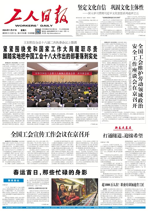工人日?qǐng)?bào) 2024年01月27日 星期一