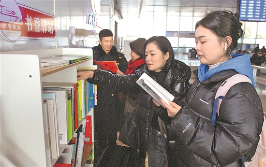 春運(yùn)期間,江蘇鎮(zhèn)江南站在候車室設(shè)立了書香驛站,為候車旅客提供舒適的閱讀環(huán)境。該書香驛站遴選精品圖書100余冊(cè)供旅客閱讀,隨借隨還,讓節(jié)日的旅途充滿溫馨與書香。