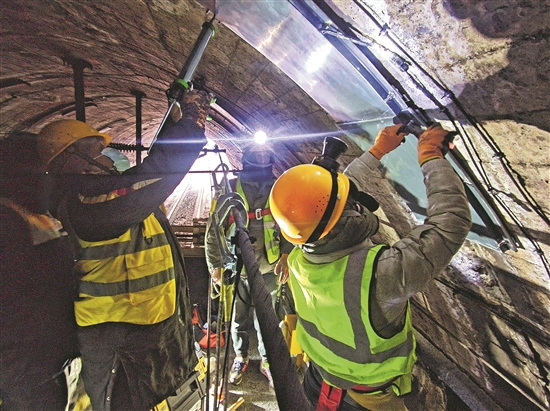 圖為1月24日,職工在金灘隧道安裝融冰裝置。劉篤仁 焦楠 攝