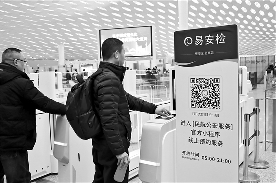 1月26日,旅客在深圳機(jī)場(chǎng)準(zhǔn)備進(jìn)行安檢。民航公安局推出的“民航公安服務(wù)”小程序預(yù)約“易安檢”服務(wù),方便旅客更加安全、高效通過(guò)機(jī)場(chǎng)安檢。