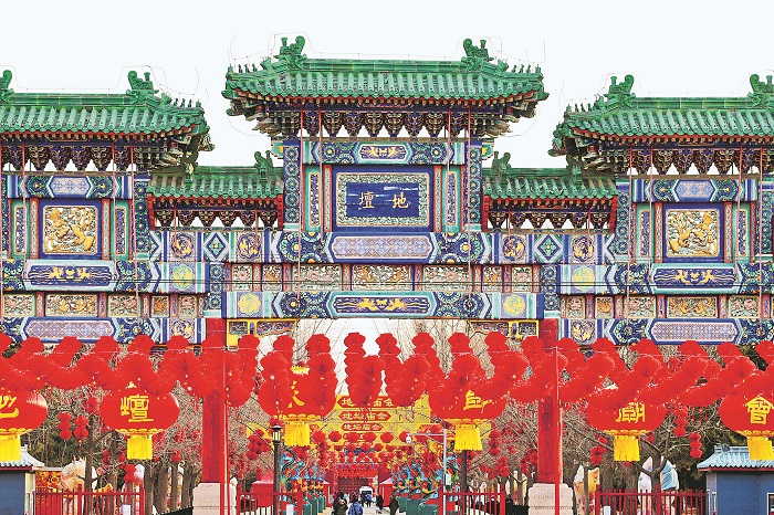 2月2日,北京地壇公園,地壇廟會景觀布置基本完成,春節(jié)喜慶氛圍濃郁。方澤壇北側(cè)以“春”字與象征吉祥如意的中國結(jié)、紅燈籠相搭配,烘托節(jié)日喜慶氛圍。據(jù)了解,今年春節(jié),地壇、龍?zhí)丁S甸、大觀園、石景山游樂園、八大處等傳統(tǒng)廟會全面恢復。