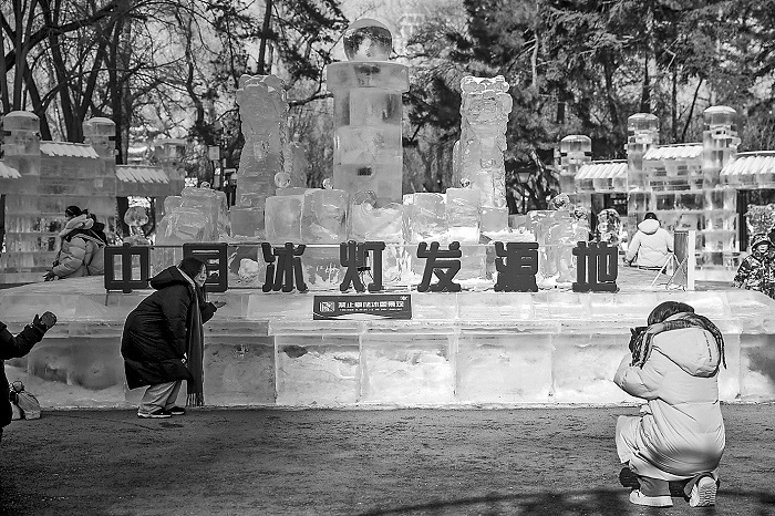 冰雪藝術(shù)的生命周期是短暫的,為了讓游客留下關(guān)于它們的長久記憶,1980年的冰燈游園會(huì)上,組織者首次搭建了用于拍照留念的冰雕景觀。