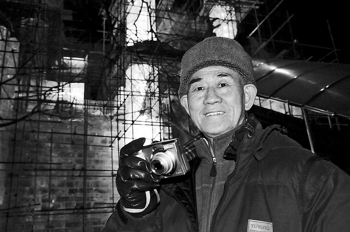 王景富生前采訪冰燈建設(shè)時(shí)的留影。受訪者供圖
