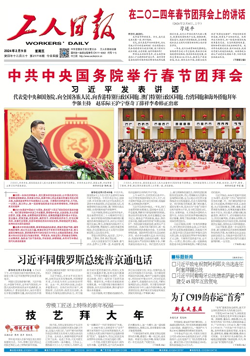 工人日?qǐng)?bào) 2024年02月09日 星期一