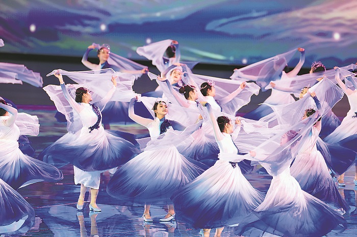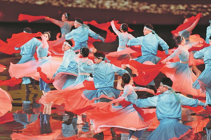 2月17日,第十四屆全國冬季運動會開幕式在內蒙古呼倫貝爾市海拉爾區(qū)內蒙古冰上運動訓練中心舉行。圖為開幕式表演。本報記者 蔚可任 攝