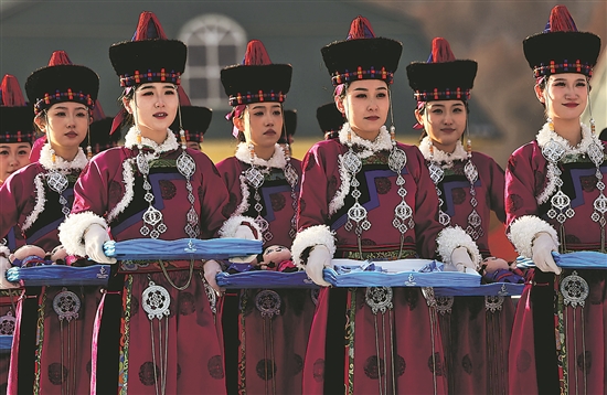哈達(dá)是蒙古族和藏族人民作為禮儀用的絲織品,是社交活動中的必備品。蒙古族的藍(lán)色哈達(dá)不僅象征純潔神圣、清新永恒的蒼穹,還寓意著淳樸善良、美好吉祥等情感。用藍(lán)色哈達(dá)迎接采訪報道本屆冬運會的媒體記者,體現(xiàn)出東道主對于四方賓朋的熱情歡迎和真摯祝愿。