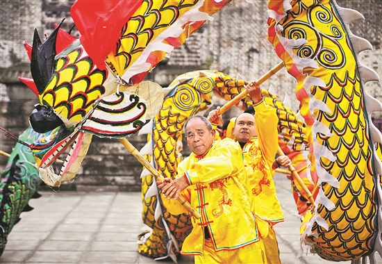 據(jù)了解,清光緒年間,瀘縣藝人將原有的“草把龍”改成彩龍,到1919年,出現(xiàn)了第一條雨壇彩龍。自此,每逢年節(jié),當(dāng)?shù)匕傩斩家璨数垺?006年,瀘州雨壇彩龍被列入第一批國(guó)家級(jí)非物質(zhì)文化遺產(chǎn)名錄。