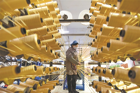 2月19日,工人在山東省淄博市沂源縣悅莊工業(yè)園一新材料企業(yè)的生產(chǎn)線上忙碌。