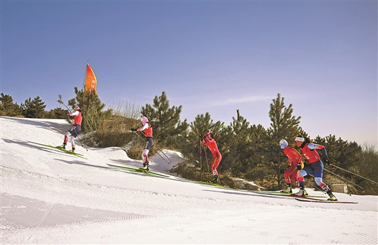 題圖:2月19日,參賽選手在越野滑雪公開組女子團(tuán)體短距離(自由技術(shù))決賽中。 新華社記者 黃博涵 攝