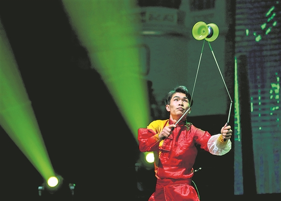 當(dāng)日,演員延翔宇在澳大利亞悉尼“四海同春”訪演活動(dòng)上表演雜技《十面埋伏》。 新華社記者 馬平 攝