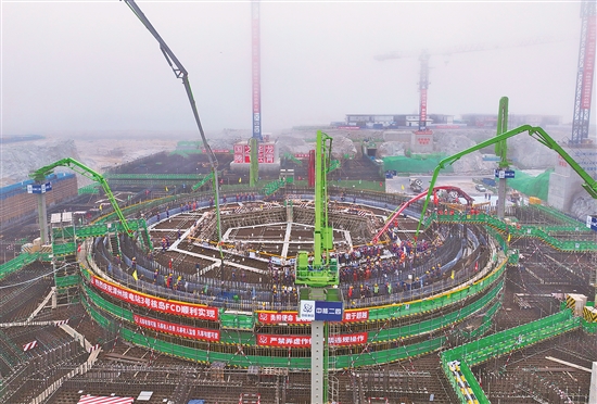 2月22日,中核集團(tuán)漳州核電二期工程“華龍一號(hào)”3號(hào)機(jī)組澆灌核島第一罐混凝土澆筑現(xiàn)場(chǎng)。