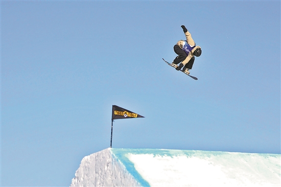 2月23日,山西隊選手蘇翊鳴在比賽中。當(dāng)日,第十四屆全國冬季運動會單板滑雪公開組男子大跳臺決賽在內(nèi)蒙古呼倫貝爾市扎蘭屯金龍山滑雪場舉行。山西隊選手蘇翊鳴以182.60分的成績獲得冠軍,安徽隊選手楊文龍和河北隊選手孫振棟分獲亞軍、季軍。
