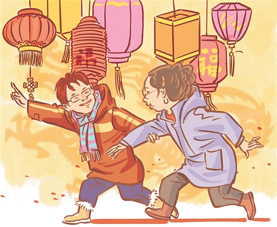 媽媽到北京時(shí),我還沒放假。工作間隙,我會(huì)打電話問問她在家里是否安好。也是在那幾天,向來不愛湊熱鬧的我仔細(xì)在手機(jī)上搜索了“北京過年”的相關(guān)信息。然后從大年初一起,按照“隔天一次”“交通方便優(yōu)先”的原則,我們先后去了兩處廟會(huì)、一處燈展。在那些地方,我見到的人可能比此前一年的總量還要多。