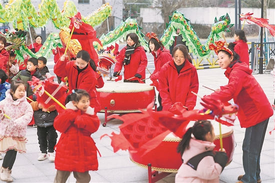 2月25日,浙江長(zhǎng)興縣李家巷鎮(zhèn)中心幼兒園的孩子們?cè)诶蠋煄ьI(lǐng)下開(kāi)展開(kāi)學(xué)第一課主題活動(dòng),體驗(yàn)舞龍、剪紙,感受非遺傳統(tǒng)文化的獨(dú)特魅力。