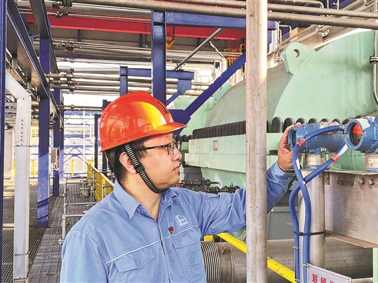 盧永正在檢查乙烯裝置裂解氣壓縮機(jī)的運(yùn)行情況。受訪者供圖
