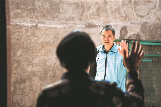 近日,在廣西興業(yè)縣山心鎮(zhèn)公和村,鐘偉平(右)出診結束后與村民揮手道別。