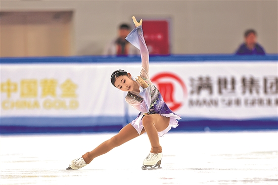 2月25日,四川隊(duì)選手金書賢摘得花樣滑冰公開組女子單人滑冠軍。本報(bào)記者 蔚可任 攝