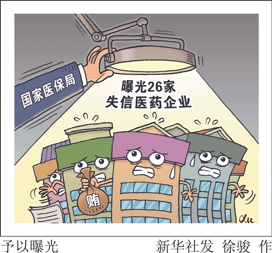國(guó)家醫(yī)保局醫(yī)藥價(jià)格和招標(biāo)采購(gòu)指導(dǎo)中心2月27日發(fā)布截至2023年12月31日各省份評(píng)級(jí)為“特別嚴(yán)重”和“嚴(yán)重”失信的26家醫(yī)藥企業(yè)情況,其中22家醫(yī)藥企業(yè)評(píng)級(jí)為“嚴(yán)重”,4家醫(yī)藥企業(yè)評(píng)級(jí)為“特別嚴(yán)重”。新華社發(fā) 徐駿 作