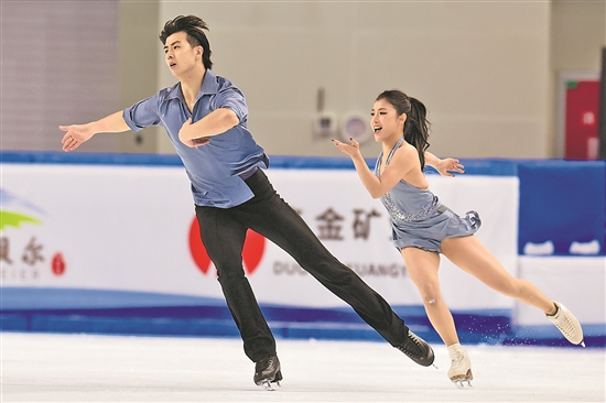 2月26日,“十四冬”花樣滑冰公開組冰上舞蹈的比賽收官,北京隊(duì)組合王詩玥/柳鑫宇獲得冠軍。圖為王詩玥/柳鑫宇在比賽中。本報(bào)記者 蔚可任 攝