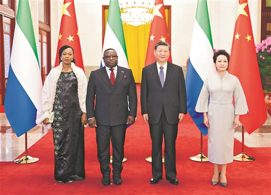 習近平指出,中非人民命運與共。中國始終把發(fā)展同非洲國家團結合作作為對外政策的重要基石。中方將秉持真實親誠理念,加強同非洲國家相互支持和友好合作,將支持非洲工業(yè)化倡議、助力非洲農(nóng)業(yè)現(xiàn)代化計劃、中非人才培養(yǎng)合作計劃同非盟《2063年議程》、非洲各國發(fā)展戰(zhàn)略緊密對接,把中國的發(fā)展、非洲的發(fā)展、世界的發(fā)展進一步結合起來,推動中非合作提質(zhì)升級,推動世界走向和平、安全、繁榮、進步的光明前景。中方愿同包括塞拉利昂在內(nèi)的非洲朋友一道,辦好今年的中非合作論壇會議,將中塞、中非友好發(fā)揚光大。