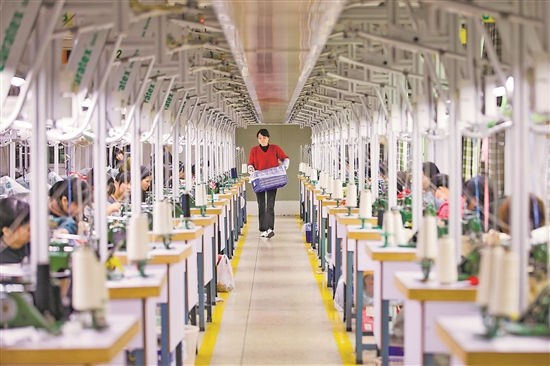 2月28日,福建省南安市金淘鎮(zhèn),女職工正在家門口的毛衣紡織公司里趕制毛衣。