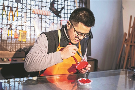 1992年出生的郝冠雄來自湖北,是楚式漆器髹飾技藝的傳承人。他從小就對手工、繪畫十分熱衷,師承中國工藝美術(shù)大師劉比建,迄今從事漆藝工作已十余年,近年在湖南省長沙市望城區(qū)丁字灣街道從事漆器制作和漆藝推廣等相關(guān)工作。