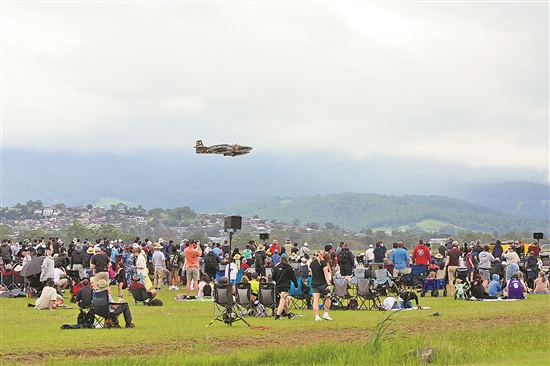 當(dāng)?shù)貢r(shí)間3月2日,參觀者在澳大利亞謝爾哈伯航展上觀看飛行表演。
