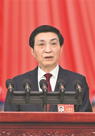 王滬寧代表政協(xié)第十四屆全國(guó)委員會(huì)常務(wù)委員會(huì),向大會(huì)報(bào)告工作。