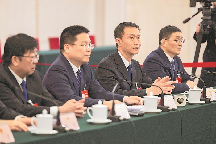 3月6日上午,陜西代表團(tuán)開放團(tuán)組會議上,中國航天科技集團(tuán)有限公司四院7416廠班組長徐立平代表(左三)表示,要鼓勵工匠積極創(chuàng)新,為他們提供必要的資源支持,推動他們不斷突破技術(shù)瓶頸,促進(jìn)工藝和產(chǎn)品的優(yōu)化升級。