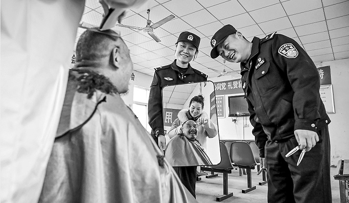 3月4日,安徽省馬鞍山市和縣公安局民警與江淮義警志愿者正在石楊鎮(zhèn)敬老院為老人理發(fā)。在第61個“學(xué)雷鋒紀(jì)念日”即將來臨之際,該局組織開展學(xué)雷鋒志愿服務(wù)活動,進一步提升警營文明新風(fēng)尚。本報通訊員 秦祖泉 攝