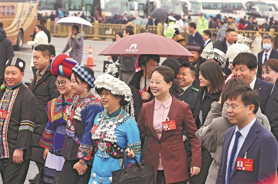 3月5日,十四屆全國(guó)人大二次會(huì)議在京開幕,代表們攜手入場(chǎng)。