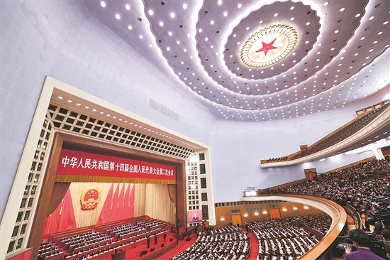 3月5日上午,北京人民大會(huì)堂,十四屆全國(guó)人大二次會(huì)議開幕會(huì)現(xiàn)場(chǎng)。