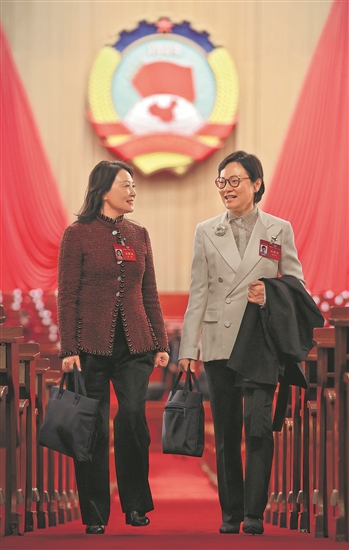 3月9日,全國(guó)政協(xié)十四屆二次會(huì)議第三次全體會(huì)議結(jié)束后,重慶靜昇律師事務(wù)所主任彭靜委員(圖左)和宜墾(天津)集團(tuán)有限公司董事長(zhǎng)陳中紅委員一起走出北京人民大會(huì)堂。