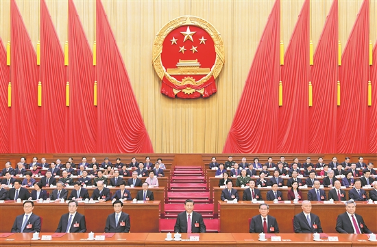 大會主席團常務主席、執(zhí)行主席趙樂際主持閉幕會并講話。 新華社記者 李學仁 攝
