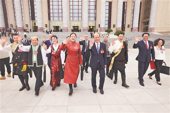 3月11日下午,十四屆全國人大二次會議在北京人民大會堂舉行閉幕會。閉幕會結(jié)束后,代表們滿懷信心地走出人民大會堂。