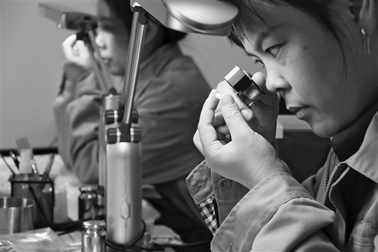 3月8日,河南省南陽市方城縣,河南神州靈山新材料有限公司員工正在生產(chǎn)大單晶金剛石,這些產(chǎn)品隨后將發(fā)往海外市場。