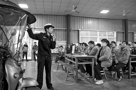 當日,民警通過播放案例警示視頻、現(xiàn)場模擬教學、互動問答等方式,針對企業(yè)員工日常工作出行方式,重點講解電動車安裝車棚的危害性和佩戴安全頭盔的重要性,引導大家切實提高自身交通安全意識,做到安全文明出行。